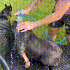 Con esta manguera todo se vuelve más fácil: tiene un cabezal con control de presión suave y uniforme, ideal para peludos nerviosos o inquietos.